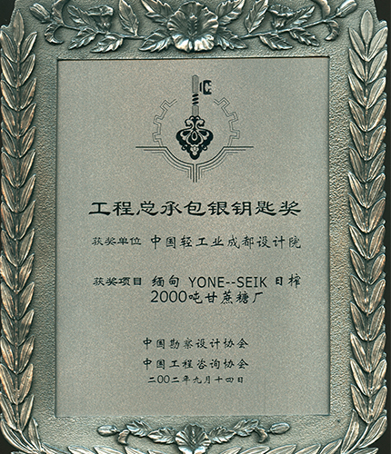 緬甸甘蔗廠工程總承包銀鑰匙獎(jiǎng)